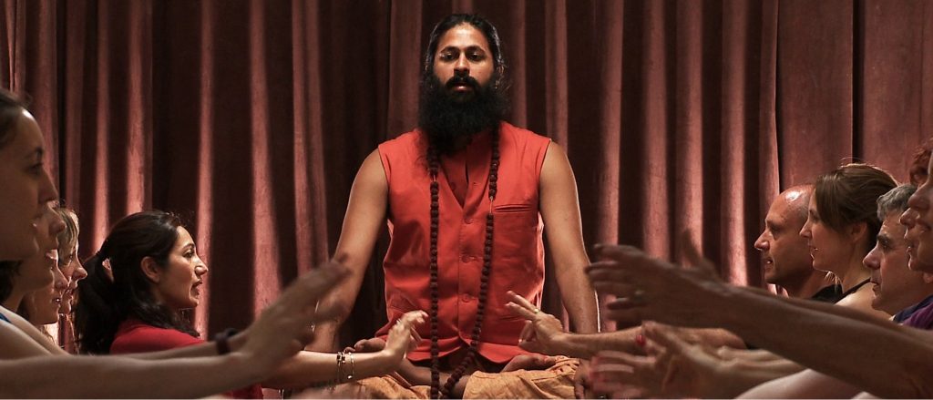 Vikram Gandhi built up an image of himself as the yogi Kumaré. Here he is leading a class